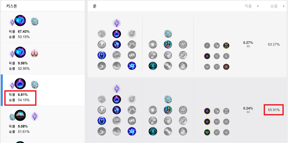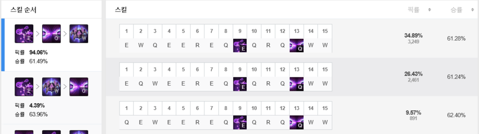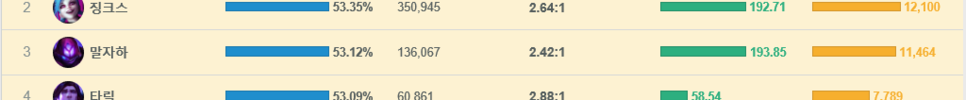 게다가 패시브를 잘 활용하면 딜교에서 이득을 보기도 편하고, 라인전이 망하더라도 궁극기만 잘 활용해주면 충분히 1인분을 해줄 수 있어 최근 매우 좋은 모습을 보여주고 있는 중입니다. 승률은 53.12%로 전체 챔피언중 3위에 랭크가 되어 있고, 플레이 횟수로 136,067회로 미드 챔피언 중에서 꽤 인기 있는 모습을 보여주고 있는 중이네요.