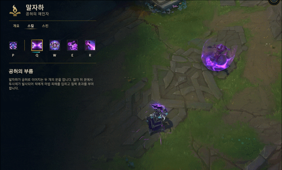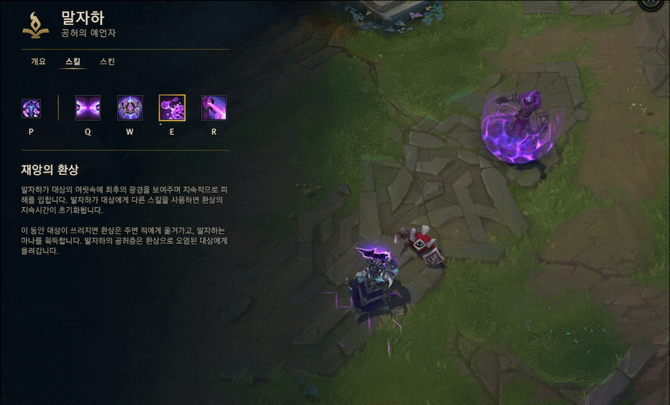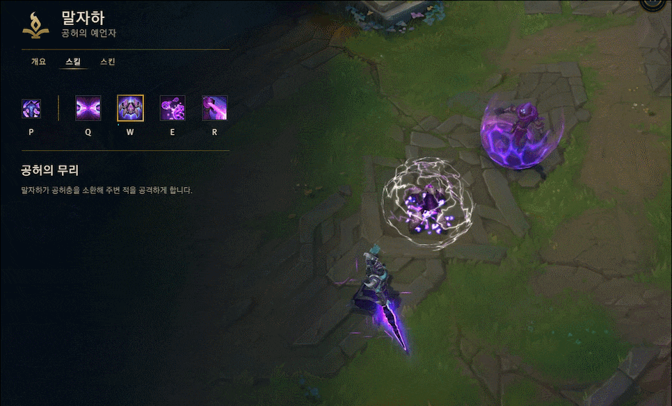 말자하는 Q 스킬로 빠르게 라인클리어도 가능하지만, 데미지와 함께 침묵도 걸어주기 때문에 패시브 효과가 On 되었을 때 사용해서 일방적인 딜교를 하실 수 있습니다. 공허충과 함께 공격을 하다 보면, 생각보다 지속딜이 좋은 편이기 때문에 많이 상대를 해보지 않은 상대라면 쉽게 상대를 하실 수 있으실 겁니다.
