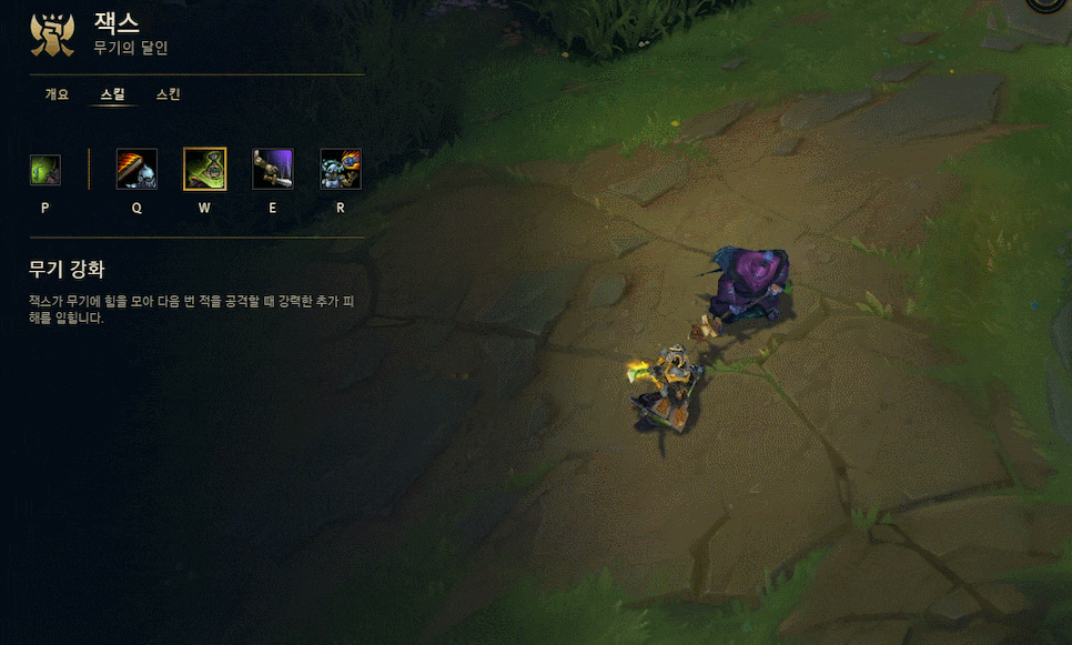 잭스는 Q(도약 공격) 스킬로 기동력과 유틸성이 매우 좋은 편인데요. 상대에게 대쉬를 할 때 외에도, 와드를 타고 이동을 하거나 미니언을 타고 도주를 하는 등 다양하게 활용이 가능하기 때문에 Q를 사용하는 방법을 많이 연습해 두시면 좋을 것 같습니다.