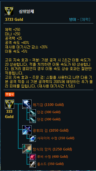 탑으로 사용을 하는 경우에는 삼위일체를 1코어로 올려주시고, 2코어는 몰왕을 올려주시는게 좋습니다. 3코어로 스테락을 사용해주시고 4코어로 상대 딜러에 맞춰 방템을 올려주시면 됩니다.(AP가 잘 큰 경우 정령의 형상, AD가 잘 큰 경우 란두인) 마지막을 수호천하를 올려주시면 되고요. 정글에서 사용을 하는 경우에는 1코어로 정글템 피괄퀴손을 올려주시고, 2코어로 삼위일체를 올린 뒤 3코어부터는 탑과 동일하게 사용을 해주시면 됩니다.