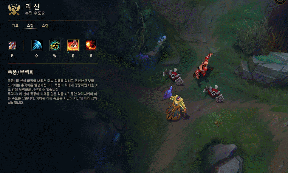 정글 리신은 Q(음파)와 W(방호) 덕분에 기동력이 매우 좋은 편입니다. 와드를 통해서 벽을 넘어 다니기 때문에 이동 경로를 예측하기도 꽤 힘든 편에 속하고요. Q가 적중되면 공명의 일격을 통해서 상대에게 바로 접근이 가능해, 라인을 도와주기 위해 갱을 다니기도 수월하고, 궁극기와 연계해서 적의 딜러를 무력화시키기에도 좋은 편입니다.