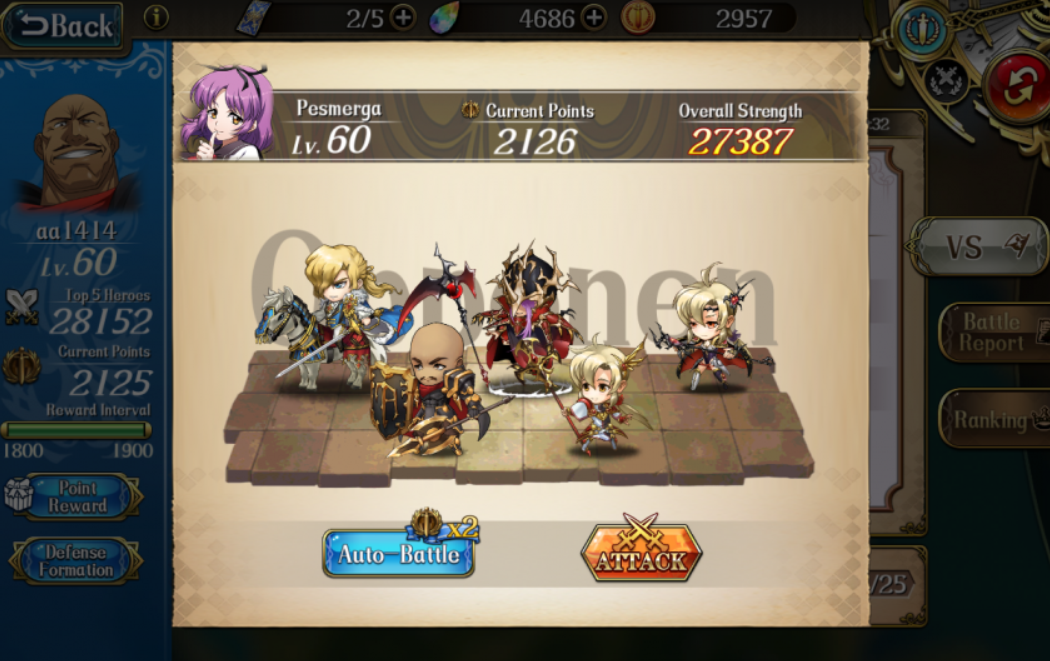 저의 엔트리 2짱인 4성 보젤의 전투력이 이정도입니다. 왜 6성 쉐리나 레온보다 높냐구요?